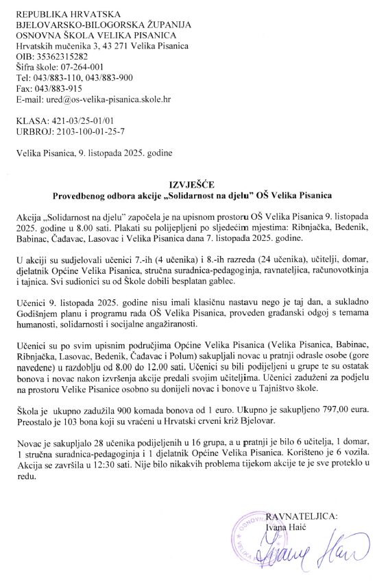Osnovna škola Velika Pisanica u suradnji s Inom provodi projekt ''Zemlja, sunce, tanjur'' u sklopu 12. Ininog Zelenog pojasa. Za navedeni projekt OŠ Velika Pisanica dobila je sufinanciranje u iznosu od 4.300 eura. Za taj novac škola je nabavila konvekcijsku pećnicu za...
