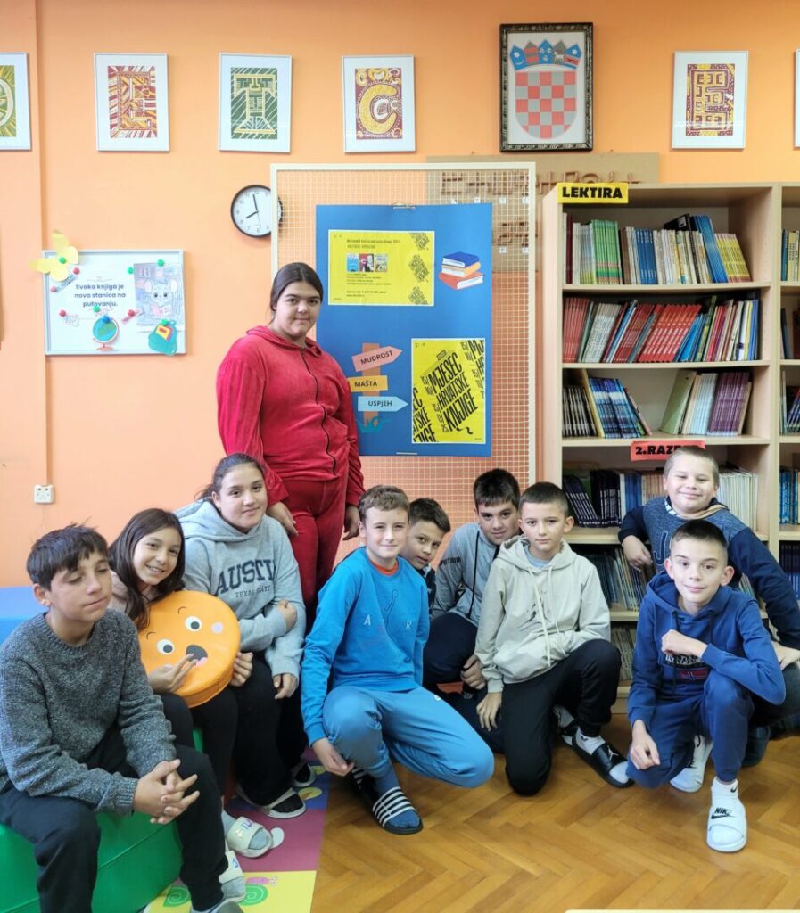 Učenici 5.b razreda naše škole ove su godine aktivno obilježili Mjesec hrvatske knjige, nacionalnu manifestaciju koja se tradicionalno održava od 15. listopada do 15. studenoga. Ovogodišnja tema glasi „Knjižničari superjunaci“, a slogan manifestacije je „Odabrali knjižničari“. Učenici su sudjelovali u Nacionalnom kvizu za poticanje čitanja 2025. koji se održava već 27 godina, ove je godine predstavio tri knjige čiji su autori upravo knjižničari: