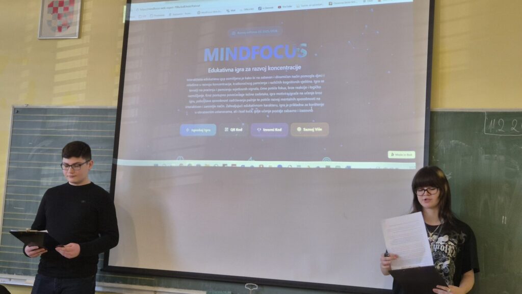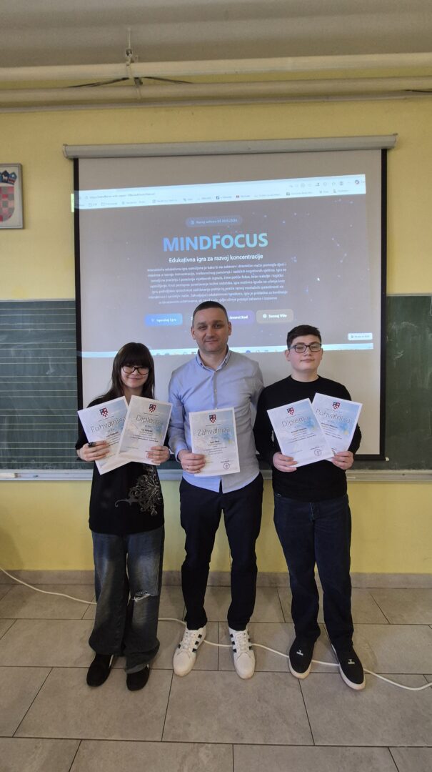 Njihov projekt usmjeren je na razvoj softvera za poboljšanje koncentracije kod djece i mladih. Riječ je o inovativnom digitalnom rješenju koje kroz pažljivo osmišljene zadatke, interaktivne elemente i praćenje napretka potiče razvoj pažnje, fokusiranosti i organizacijskih vještina. Projekt je pokazao visoku razinu tehničke izvedbe, ali i razumijevanje stvarnih potreba djece i mladih u suvremenom digitalnom okruženju.